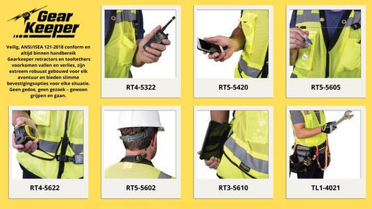 Gear Keeper retractors zijn veelzijdig inzetbaar voor professioneel gebruik én hobby en vrije tijd. Van handhaving en werken op hoogte tot outdoor toepassingen en hengelsport. Gear Keeper tool tethers zorgen voor veilige bevestiging van tools op hoogte.