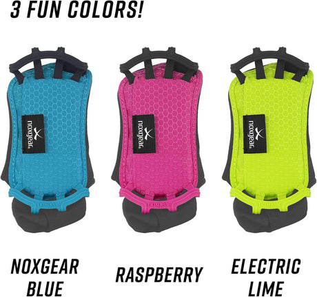 De Noxgear telefoonhouder is verkrijgbaar in drie stijlvolle kleuren: roze, limoen en blauw. Kies de kleur die het beste bij jouw stijl past en maak je uitrusting compleet.