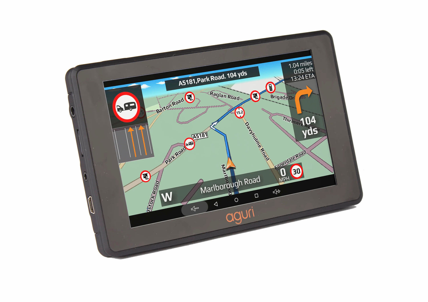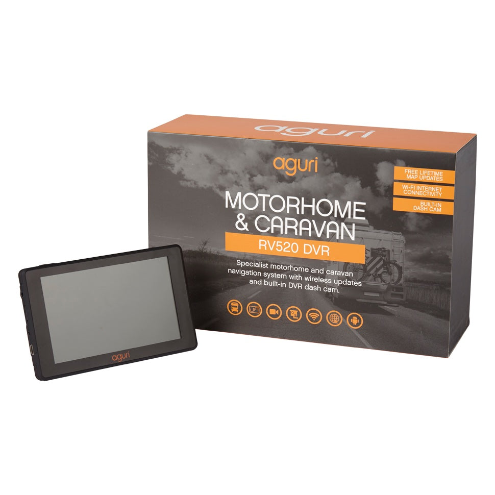 Mit dieser RV520 Caravan- und Camper-Navigation von Aguri können Sie mit Ihrem Wohnmobil oder Wohnwagen hinter Ihrem Auto entspannt zu Ihrem Urlaubsziel fahren. Das Aguri RV520 ist ein Navigationssystem für Wohnmobile und Wohnwagen, das zusätzlich mit einer integrierten Dashcam ausgestattet ist. Der LCD-Touchscreen des Aguri RV520 hat eine Größe von 5 Zoll (12,7 cm) und läuft auf Android. Dieses RV520 ist sozusagen ein Mini-Tablet mit smarter Software und nützlichen Funktionen speziell für Camper und Caravans.