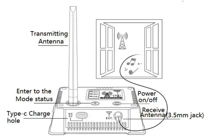 - Verwenden Sie einen DC 5V USB-C-Anschluss, um den Repeater aufzuladen.