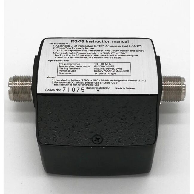 Das helle, hintergrundbeleuchtete LCD-Display zeigt SWR, Vorwärts- (FWD) und reflektierte (REF) Leistung auf einen Blick an. Dank seiner breiten Frequenzabdeckung von 1,6–60 MHz eignet sich der RS-70MAX für viele HF-Anwendungen.