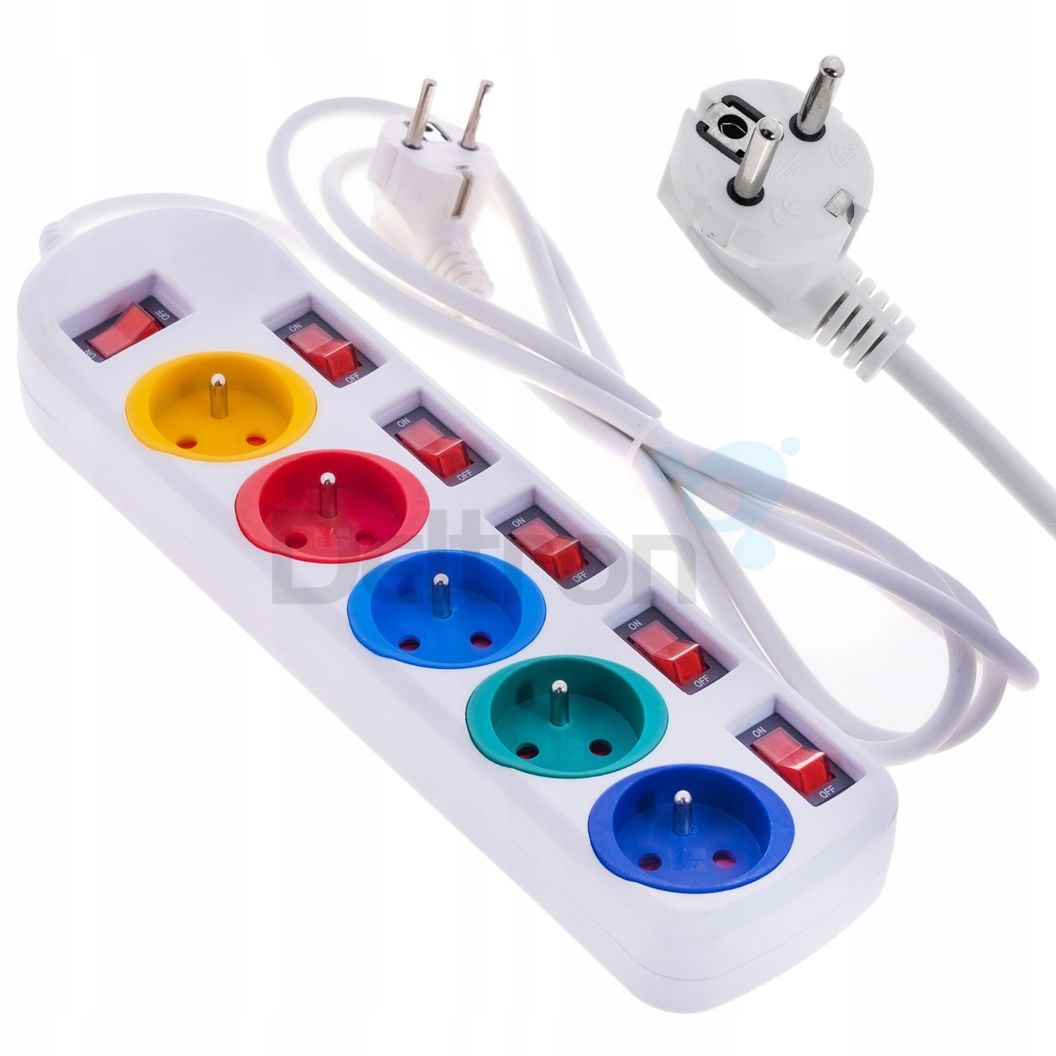 Mit einem 1,5 Meter langen Kabel und fünf Anschlüssen bietet Ihnen diese farbenfrohe Steckdosenleiste mit Verlängerungskabel die Freiheit, alle Ihre Geräte sicher und ordentlich anzuschließen. Das moderne weiße Design fügt sich nahtlos in jedes Interieur ein, während der Überspannungsschutz für zusätzliche Sicherheit sorgt.