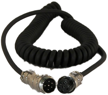 Mikrofon-Verlängerungskabel mit 6-poligem Stecker und 6-poliger Buchse. Dieses Spiralverlängerungskabel hat eine Länge von 100 cm bis maximal 250 cm.