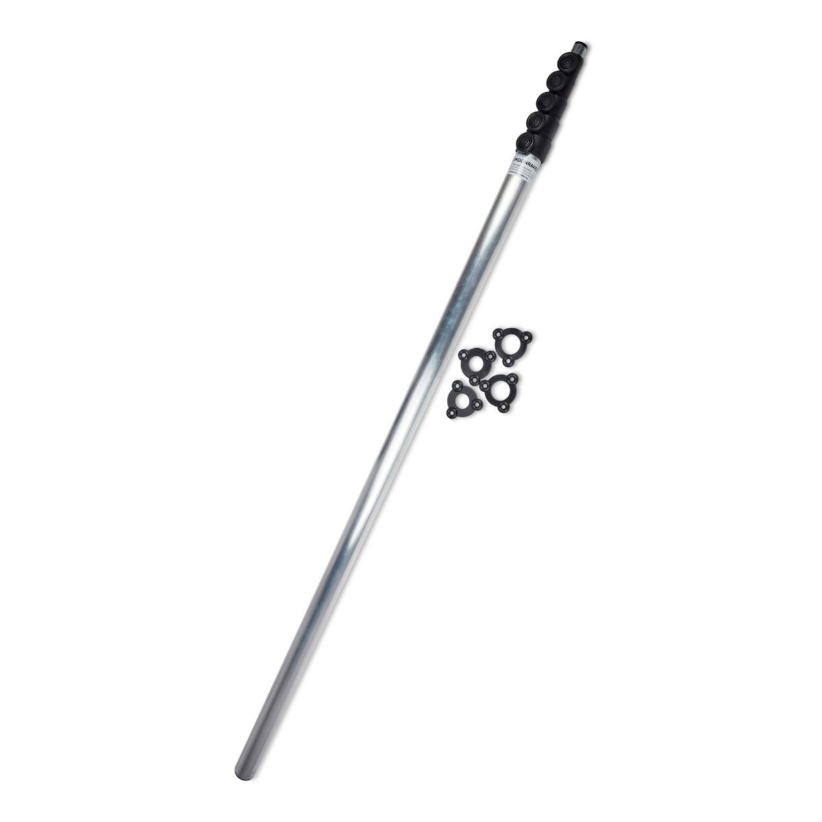 Der Mast besteht aus 6 ausziehbaren Aluminiumprofilen mit einem Durchmesser von 5,1 bis 2,5 cm , was für Stabilität und ein geringes Gewicht von nur 3 kg sorgt. Dank der mitgelieferten Abspannringe steht der Mast auch bei leichter Windlast stabil.