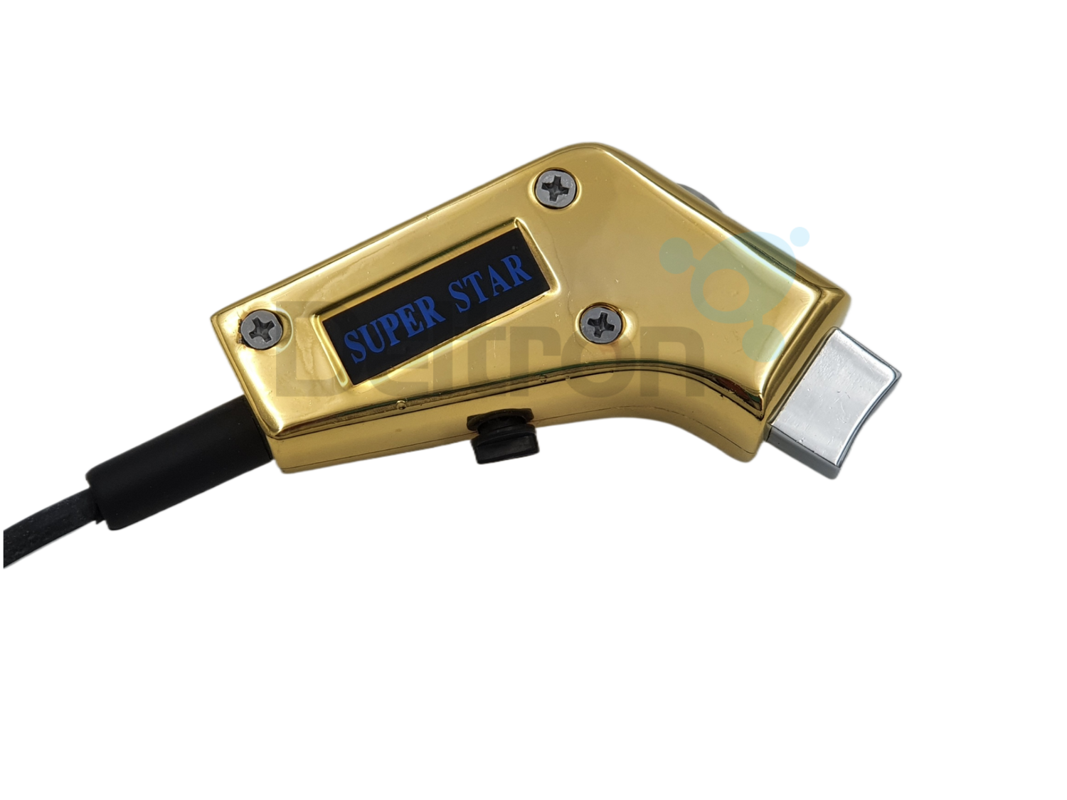 Das Super Star 4P Gold ist ein Handmikrofon in Form einer goldenen Pistole und ist mit einem 4-poligen Anschluss ausgestattet.