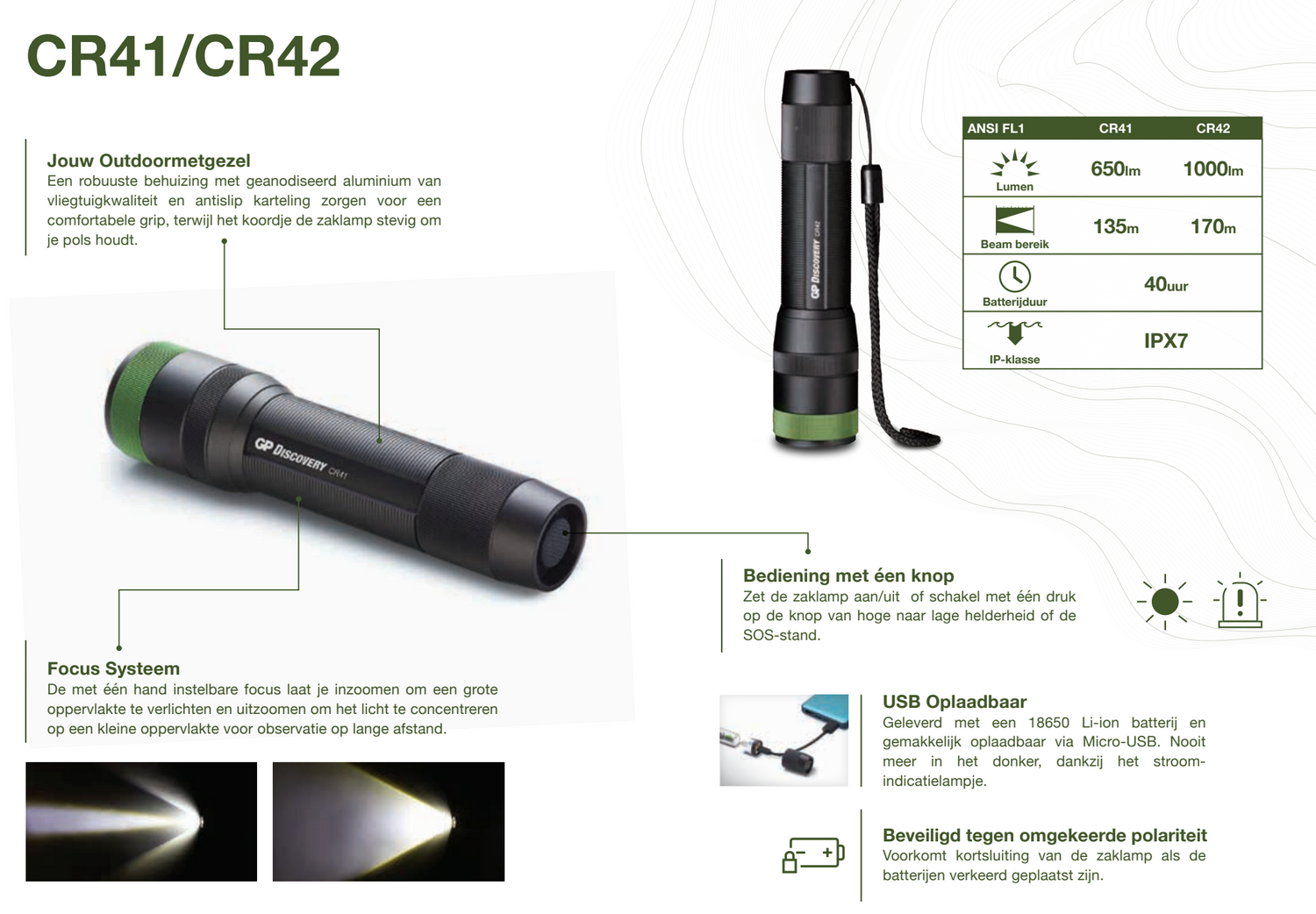 Mit der wiederaufladbaren GP CR42 Taschenlampe tappen Sie nie wieder im Dunkeln. Diese leistungsstarke 1000-Lumen -Taschenlampe ist ideal für alle, die in anspruchsvollen Situationen auf Zuverlässigkeit angewiesen sind. Ob Stromausfall, Notfall, abendlicher Spaziergang mit dem Hund oder der Weg zum Müllcontainer im dunklen Garten – auf diese GP-Taschenlampe können Sie sich verlassen.