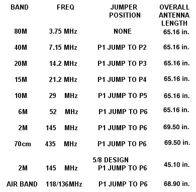 - 1/4 Wave: 70cm (435 or 445MHz)