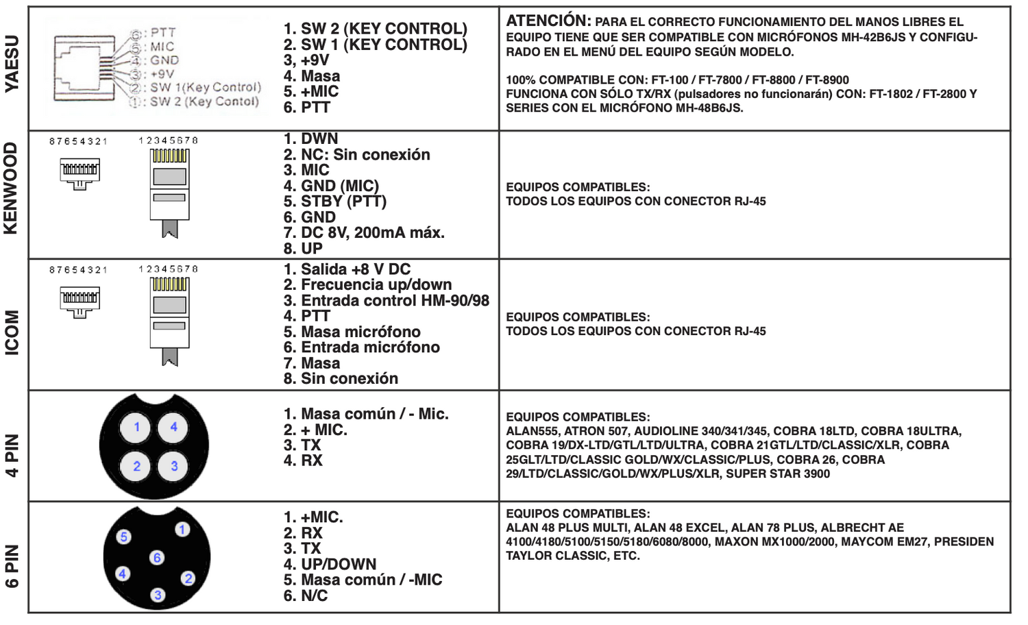 The set is plug-and-play and operates on 12VDC. If there's a 5V sticker on the power cord, this is a manufacturing defect – the set operates only on 12V. The AV-1KM also features adjustable microphone sensitivity and interchangeable connection cables, making it easy to adapt to various radios with a 6-pin microphone connector.