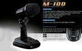 The Yaesu M-100 is a rugged desktop microphone designed for radio amateurs seeking exceptional sound quality. This microphone utilizes both a directional condenser and a dynamic microphone element, each with a specially tuned frequency response for optimal audio reproduction.