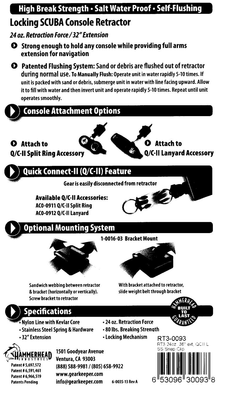 De Gear Keeper RT3-0093 is speciaal ontworpen voor duikers die hun duikconsole veilig en binnen handbereik willen houden. Dankzij de stevige messing clip bevestig je de retractor eenvoudig aan een riemlus, D-ring of harnas, zodat je console altijd op een vaste plek blijft. Met de Quick Connect II connector en splitring koppel je je console snel aan en af, zonder gedoe.