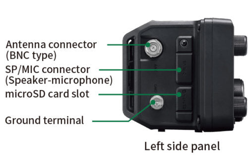 De microSD-kaartsleuf maakt de opslag van gebruikersprofielen, QSO-opname, TX-spraakgeheugensleutel, RTTY-registratie, GPS-gegevens, schermopname, firmware-upgrades en programmering mogelijk.