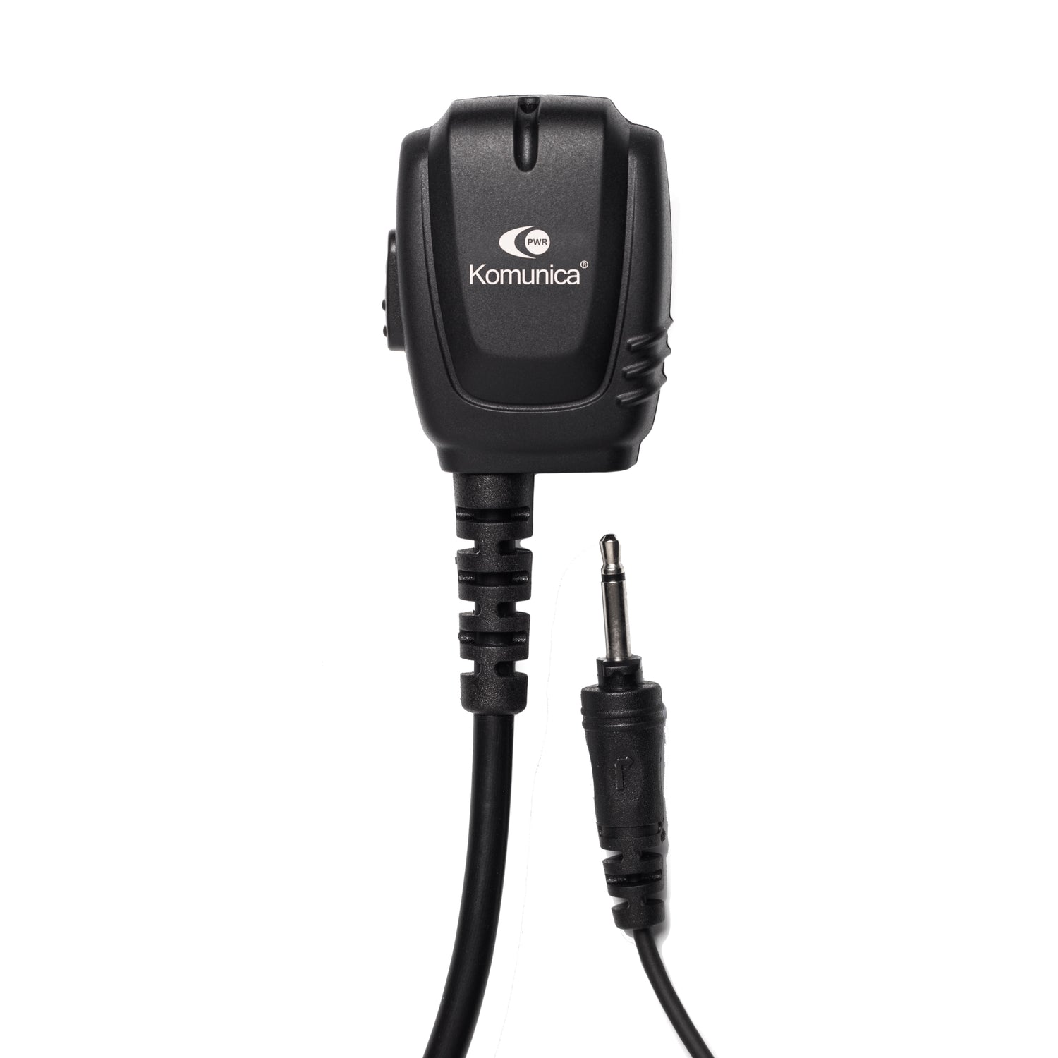 De Komunica PWR-2302 is een beveiligingsoortje met een 2-pin connector met Kenwood bedrading. Dit beveiligingsoortje bestaat uit een oortje met oorhaak en een speaker microfoon met roterende metalen riemclip.