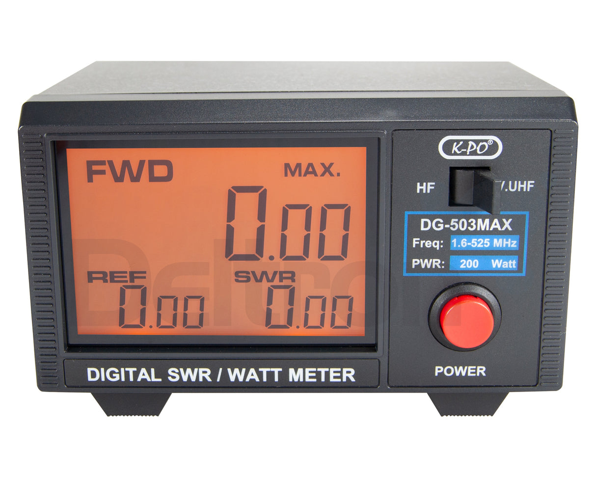 De K-PO DG-503MAX is een geavanceerde SWR- en PEP-meter die werkt zoals een traditionele analoge meter, maar biedt veel meer. Naast het meten van standaard AM en SSB signalen, kan de DG-503MAX ook digitale modulaties zoals DMR, FDMA en TDMA nauwkeurig meten. Met de handige 'MAX'-schakelaar aan de achterkant kun je eenvoudig schakelen tussen PEP en TDMA metingen. De meter dekt frequenties van 1,6 tot 60 MHz en 125 tot 525 MHz en heeft een maximaal vermogen van 200 Watt, met een nauwkeurigheid van 5%.