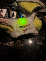 Op het bedieningspaneel, onder het laadpunt of stroomlogo, houdt de accu indicator jouw op de hoogte van de accustatus zodat je met een gerust hart op pad kunt gaan. Wanneer de indicator led rood knippert tijdens het gebruik geeft de accu aan dat hij aan de lader moet. De accu zal bij het net beginnen te knipperen van de rode led, nog ongeveer 10 minuten tot 20 minuten het tuig voorzien van verlichting. Leg je bij thuiskomst het hondentuig aan de lader met de meegeleverde micro-usb/USB laadkabel, dan zal de rode led constant blijven branden tijden het laden. Zodra de accu opgeladen zal er een groene led constant branden.