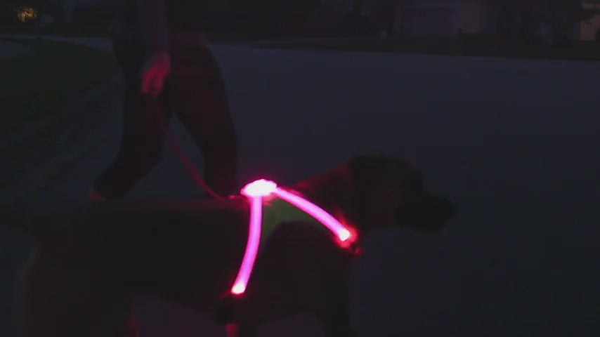 Naast de heldere verlichting is dit hondentuig en de fluoriderende gele kleur van het basistuig is dit tuig rondom afgewerkt met reflecterende biezen zodat je hond bij daglicht ook extra goed zichtbaar is. Het extra voordeel van de reflectie is dat deze ook als extra zichtbaarheid functioneert wanneer er licht op schijnt van bijvoorbeeld en stel koplampen van een auto.