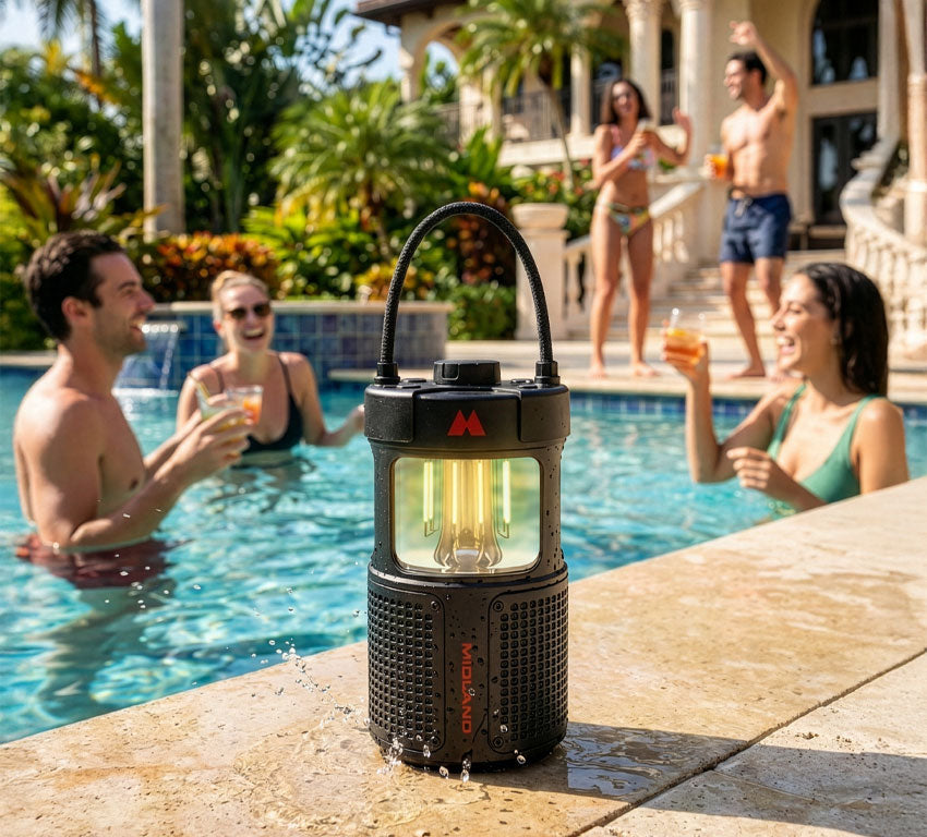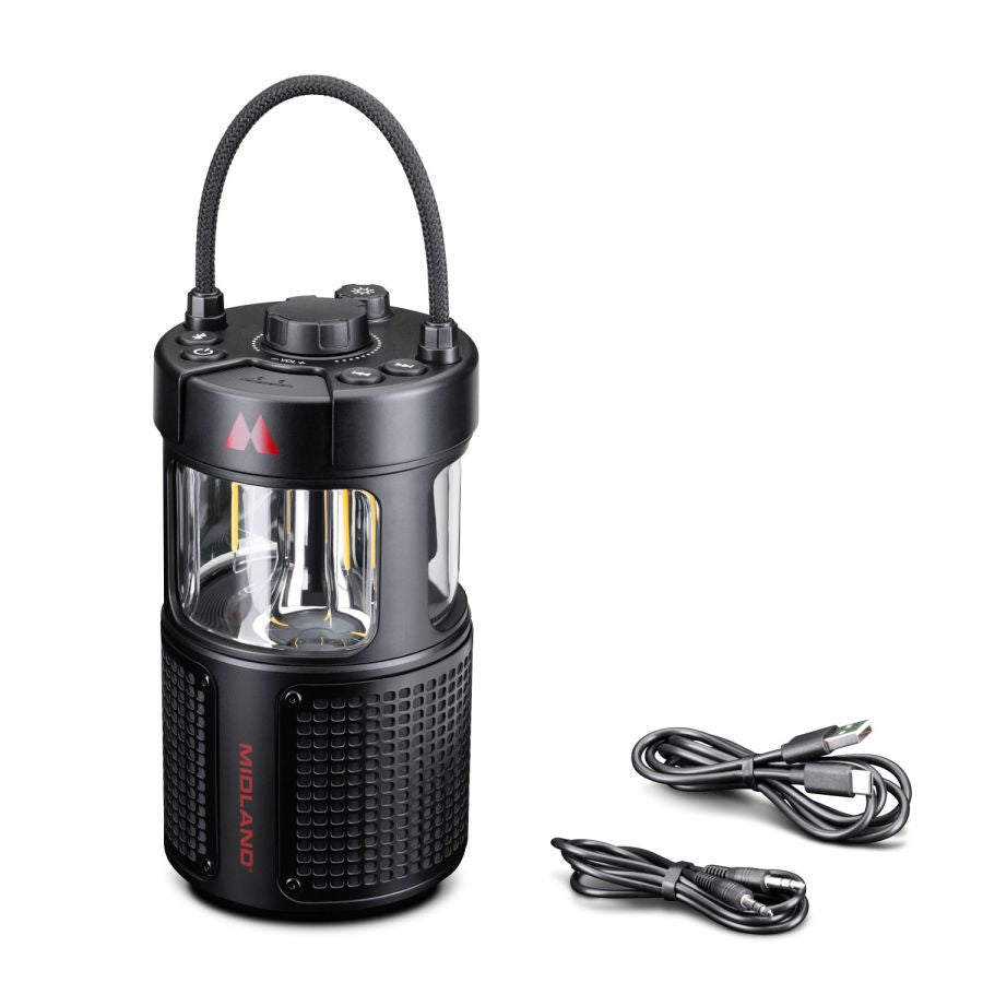Of je nu op de camping, in je camper, onderweg met de vrachtwagen of gewoon gezellig op je terras of in de tuin zit: de Midland ER Lantern noodradio (C1717) zorgt altijd voor licht, muziek en energie. Deze slimme en veelzijdige camping radio met LED lantaarn combineert verlichting, een krachtige Bluetooth speaker en een powerbank in één compact apparaat.