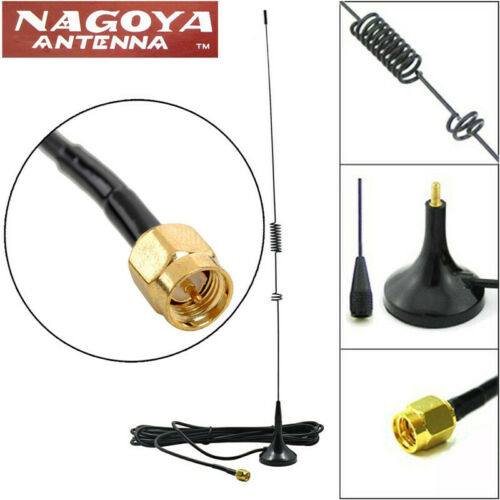 De Nagoya UT-106UV SMA-M is een mobiele dualband antenne met magnetische voet voor gebruik met frequenties TX on 144 / 430 MHz, 2.15 dBi gain. RX on 136 - 174 / 400 - 520 MHz.. Het is een Plug en play mobiele antenne die geleverd wordt met 3 meter RG174 coaxkabel met daaraan een SMA-Male connector.