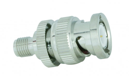 Coaxiale adapter van BNC-Male naar SMA-Female van het Duitse kwaliteitsmerk SSB Electronics. .